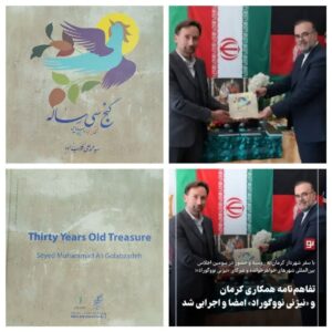در مراسمی ، شهردار کرمان کتاب «گنج سیساله بنیاد ایرانشناسی» را که فعالیتهای علمی، فرهنگی و پژوهشی بنیاد ایرانشناسی شعبه کرمان را در بازه زمانی ۱۳۶۸ تا ۱۳۹۸ به تصویر کشیده است، به شهردار نیژنی نووگوراد روسیه (شهر خواهرخوانده کرمان) اهدا کرد. این اقدام در پی امضای تفاهم نامه همکاری میان دو شهر صورت گرفت و نشاندهنده تعمیق روابط فرهنگی و علمی بین ایران و روسیه است