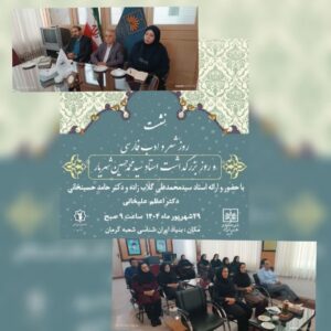 🔹 در پایان سرکار خانم دکتر علیخانی این روز بزرگ را به همه مردم فرهنگ دوست استان کرمان، اندیشمندان، شاعران، و فرهیختگان و همکاران تبریک گفته و خواستار نشست هایی بیشتر در این زمینه شدند.